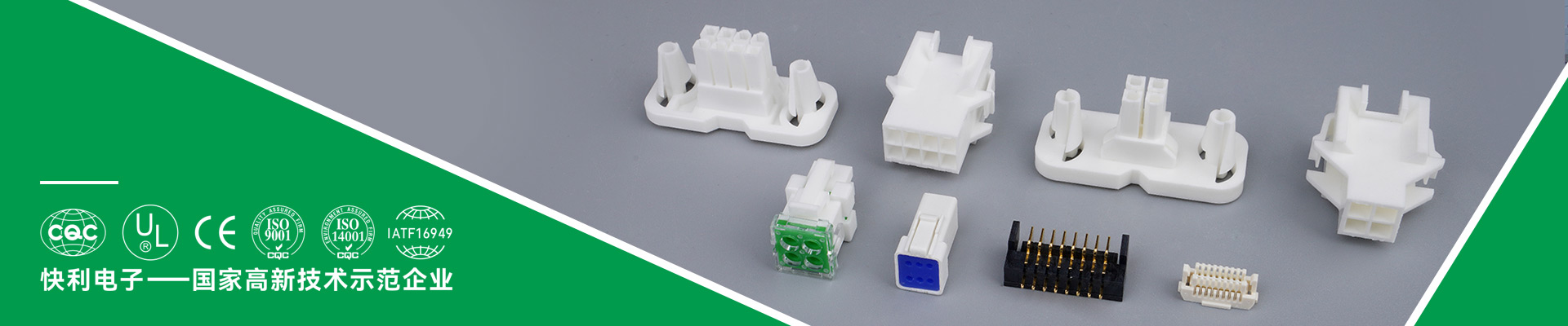浙江快利电子有限公司是一家专业致力于电子连接器的制造企业,精心投入于 科研、开发、生产、销售高新科技电器产业,具有雄厚的技术开发实力和专业 现代化的生产能力,在电子电器行业中位居领先地位。目前具有四十余个品种二百多个规格的产品,包含:RAST5.0连接器、FPC条形连接器、电池座连接器、端子连接器、板对线连接器、中继带锁连接器、线束连接器、空调冰箱连接插件等;产品广泛应用于家用电器、汽车、通讯设备等领域。公司注重技术、设备的革新,不断地引进和吸收国内外的电子制造顶尖技术、生产设备和检测仪器来优化企业自身,具备强大的产品自主开发设计和一流的制造加工能力,品质及技术研发人员占公司员工的25%,可以根据客户要求设计生产各种精密成型模具和塑料制品,并且具备完善的质量检测体系,确保用户得到放心满意的产品。